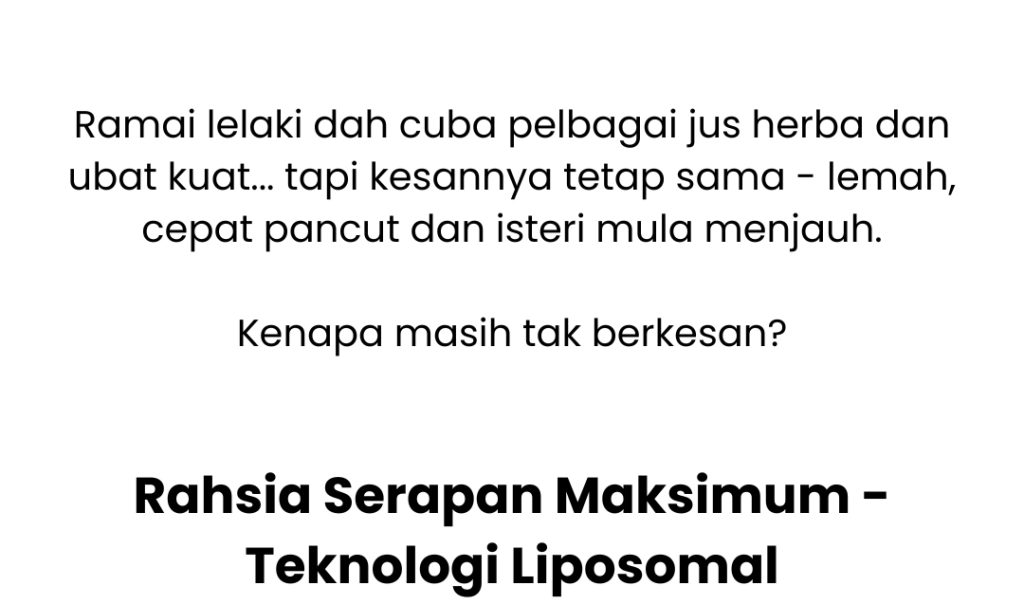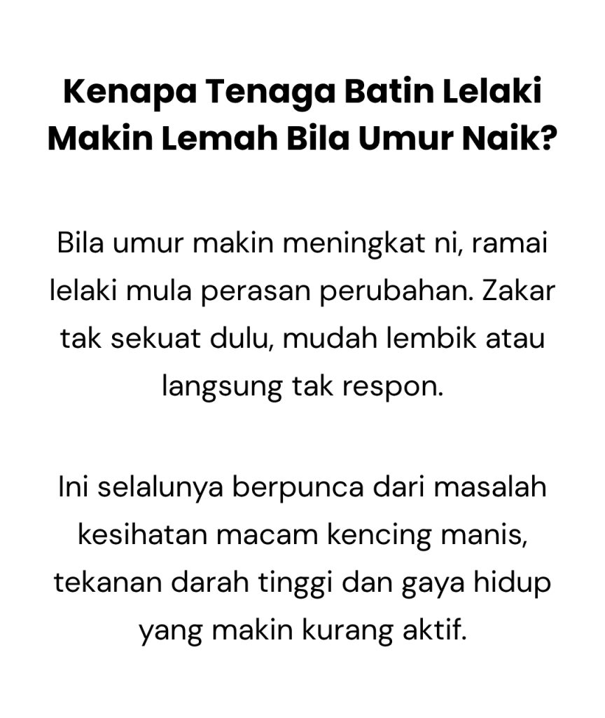 Ia bukan beri kesan sementara, sebaliknya membaiki stamina & aliran darah lelaki dari dalam.